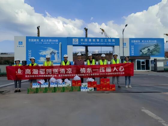 為進一步做好夏季一線職工防暑降溫工作,8月9日下午,重慶設(shè)計集團所屬子企業(yè)重慶市建筑科學(xué)研究院有限公司黨委委員、監(jiān)事會主席王釗赴江北分中心承接第三方檢測和監(jiān)測的“重慶江北國際機場T3B航站樓及第四跑道工程航站區(qū)工程”項目開展高溫慰問活動,為奮戰(zhàn)在高溫一線的項目部人員送上一份清涼、一份關(guān)懷。