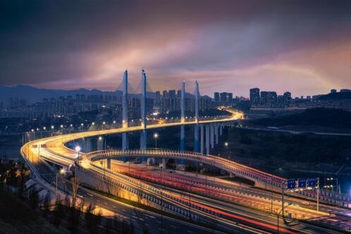 蔡家嘉陵江大橋項(xiàng)目位于渝武高速馬鞍石大橋、軌道六號(hào)線嘉陵江大橋之間,北起北碚區(qū)蔡家,南接兩江新區(qū)禮嘉。是城市南北向主干道的重要組成部分。主橋?yàn)殡p塔雙索面斜拉橋,全長約1442米,主橋全長為 600米(跨徑布置為140米+320米+140米),斜拉橋下塔柱最高達(dá)110米,上塔柱高度最高達(dá)115米。立柱擎天、飛架南北,湖藍(lán)水紋韻律,優(yōu)雅與氣勢并存,與自然有機(jī)融合,為重慶新晉的攝影打卡地。