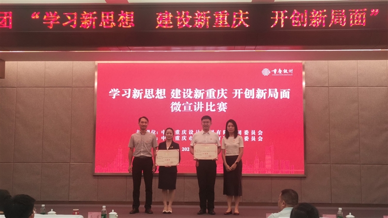 為進一步深化學習、宣傳貫徹習近平新時代中國特色社會主義思想和黨的二十大精神,隆重慶祝中華人民共和國成立75周年,近日,重慶設計集團“學習新思想 建設新重慶 開創(chuàng)新局面”微宣講比賽隆重舉行,重慶市建筑科學研究院有限公司選派的兩名選手彭博、師震分別以92.23分、89.5分的高分在全集團14名參賽選手中位列第二名、第四名,斬獲二、三等獎。