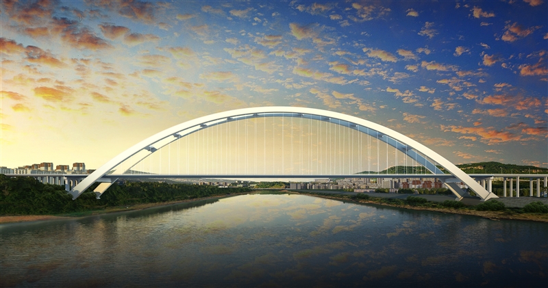 瀘州市藍(lán)田過江通道(藍(lán)田長江五橋)及連接線工程是《瀘州市跨江通道專項(xiàng)規(guī)劃(2014-2030)》中規(guī)劃的新建8座跨江通道之一,項(xiàng)目包含跨江主橋、兩岸引橋、學(xué)院中路升級(jí)改造、未來大道延伸線工程等,總投資約35.74億元。其中,主橋凈跨徑為570m鋼箱拱橋、雙向六車道,總寬48.5m,總長度為612m,為目前在建世界最大跨徑中承式鋼箱拱橋。
