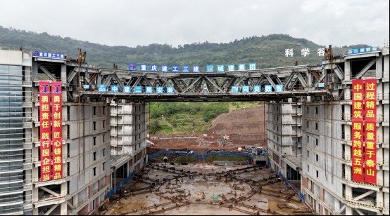 9月21日,在歷經(jīng)近12小時的緊張施工后,隨著超2000噸的鋼連廊桁架提升39.2米到達(dá)預(yù)定位置,由重慶設(shè)計集團(tuán)市建科院公司承擔(dān)監(jiān)測工作的科學(xué)谷數(shù)智科創(chuàng)園二期項目大跨度鋼連廊成功合龍,標(biāo)志著項目建設(shè)進(jìn)入最后階段。這也是西部地區(qū)首個千噸級“X”形桁架升頂。