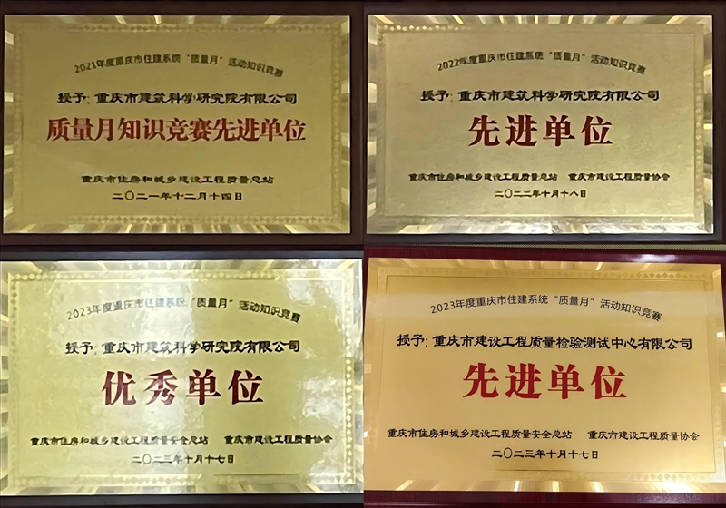 2021年重慶住建系統(tǒng)第一屆質(zhì)量月知識競賽開展以來,市建科院公司積極參與,2021年、2022年榮獲先進(jìn)單位稱號,2023年、2024年榮獲優(yōu)秀單位稱號,子公司榮獲先進(jìn)單位稱號。連續(xù)4年取得質(zhì)量月知識競賽佳績的背后,是集團(tuán)公司扎實(shí)的技術(shù)儲備對質(zhì)量矢志不渝的追求。