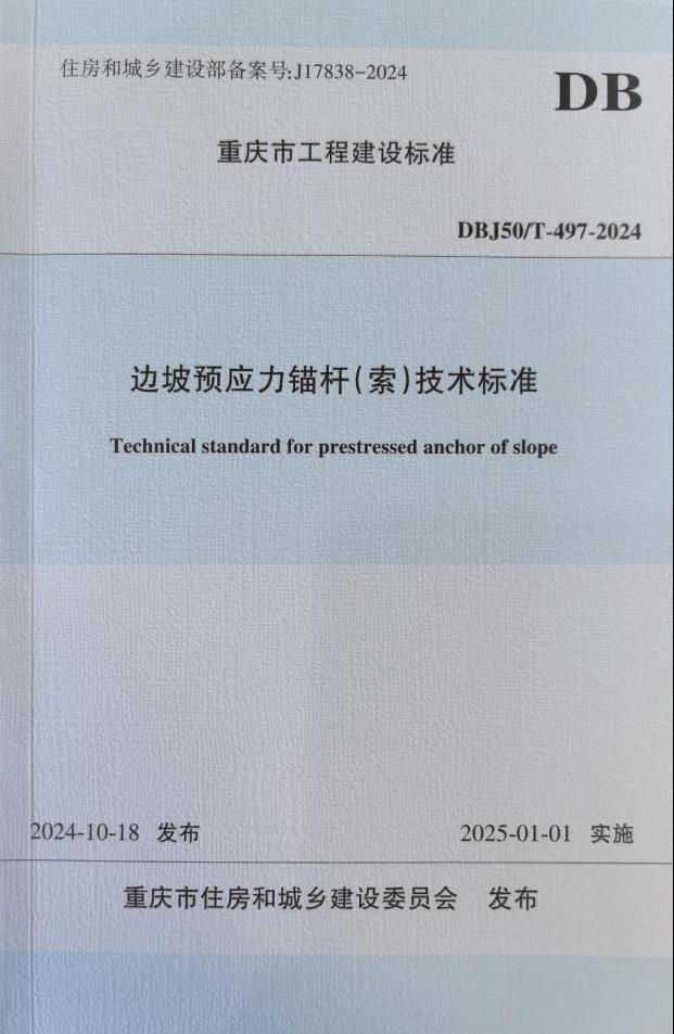作為主編單位,在標準編制過程中,市建科院調(diào)查總結了近年來重慶市在邊坡預應力錨桿(索)設計、施工、檢測、監(jiān)測及質(zhì)量驗收的工程經(jīng)驗,參考了國內(nèi)有關技術標準,吸收了國內(nèi)外相關科技成果,開展了多項專題研究,并在重慶市范圍內(nèi)廣泛征求了有關單位的意見,經(jīng)反復討論、修改、充實,最后經(jīng)審查定稿。標準的正式施行,是對公司在邊坡預應力錨桿(索)方面技術實力的肯定,彰顯了公司在該領域中的技術引領地位,對提升邊坡預應力錨桿(索)技術水平影響力方面具有重要意義。