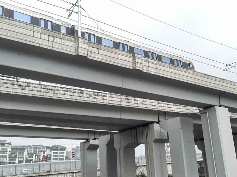 本次荷載試驗對象為該工程2.1km高架橋,涉及到3個車站區(qū)間,橋梁結(jié)構(gòu)形式復(fù)雜,包括簡支梁橋、連續(xù)梁橋、連續(xù)鋼構(gòu)橋等結(jié)構(gòu)形式。其中,部分橋梁還存在與即有運行線路交叉的情況。為保證荷載試驗的順利開展和檢測數(shù)據(jù)的科學(xué)準(zhǔn)確可靠,檢測人員做了大量前期準(zhǔn)備工作,編制了專項檢測方案并進行了專家評審。本次荷載試驗相當(dāng)于在橋梁通車前進行一次全面“體檢”,旨在全面了解橋梁結(jié)構(gòu)在荷載作用下的實際工作狀態(tài),為施工質(zhì)量控制、運營安全評估及后續(xù)的維護加固提供基礎(chǔ)數(shù)據(jù)和技術(shù)支持。‌