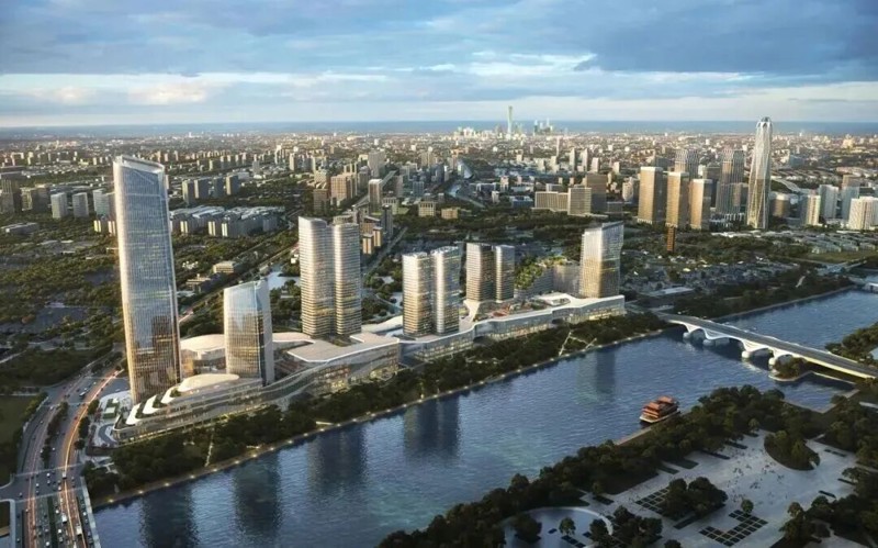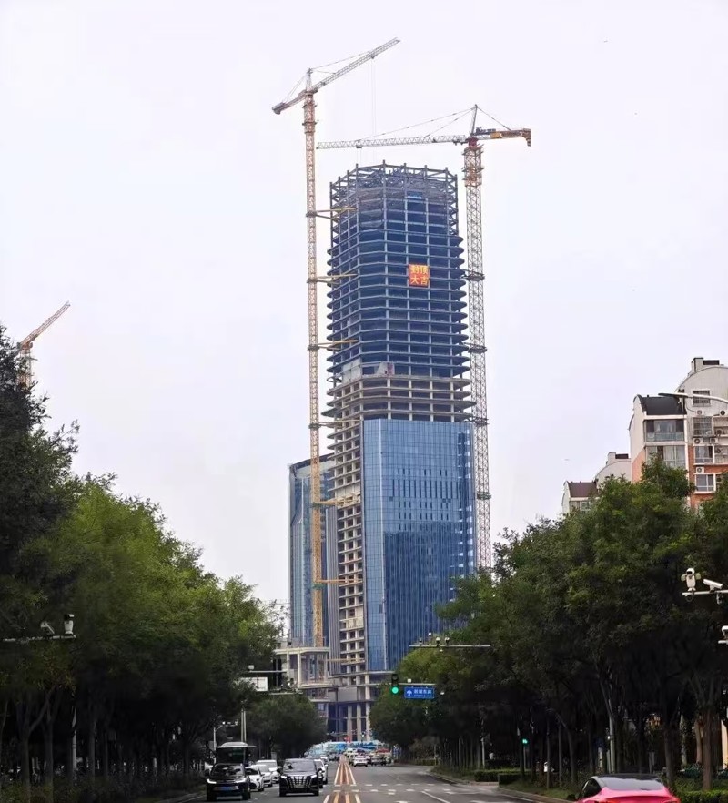 (高度達249.9米的超甲級濱水寫字樓運河天璽鋼結(jié)構(gòu)封頂)