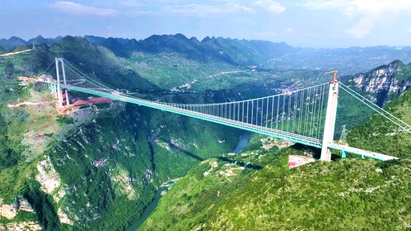 大橋以2890米的全長、1420米的主橋跨徑,雄踞山區(qū)橋梁跨徑“世界第一”;更以橋面距水面625米的垂直高度,問鼎全球橋梁“第一高度”。這座被網(wǎng)友稱贊為“橫豎”皆創(chuàng)“世界第一”的超級(jí)工程,從藍(lán)圖變?yōu)楝F(xiàn)實(shí),對(duì)每一環(huán)節(jié)的質(zhì)量與精度都提出了極致要求。