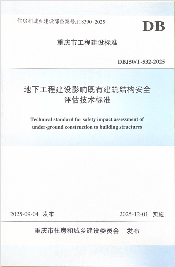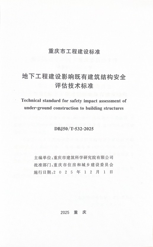 重慶市工程建設(shè)標(biāo)準(zhǔn)+1!《地下工程建設(shè)影響既有建筑結(jié)構(gòu)安全評估技術(shù)標(biāo)準(zhǔn)》12月1日正式實施
