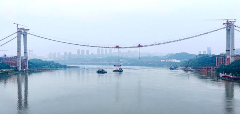 黃桷沱長江大橋連接南岸區(qū)雞冠石和兩江新區(qū)鐵山坪,全長1260米,主跨765米,為單跨懸吊雙塔三跨連續(xù)鋼桁梁懸索橋,是目前世界在建最大跨徑公軌兩用懸索橋。作為重慶中心城區(qū)“八橫七縱九聯(lián)絡(luò)”快速路網(wǎng)的關(guān)鍵節(jié)點(diǎn),黃桷沱長江大橋集“城市快速路+城市主干路+軌道交通”多功能于一體,串聯(lián)內(nèi)環(huán)快速路、渝航大道、繞城高速等重要路網(wǎng),建成后將分流寸灘長江大橋、朝天門長江大橋跨江車流,有效緩解內(nèi)環(huán)快速和渝航大道的交通壓力。