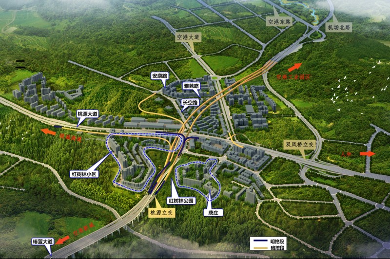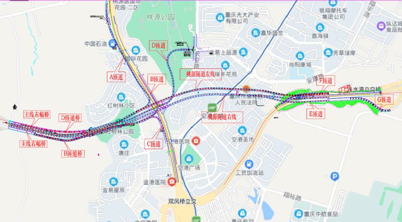 椿萱大道作為快速路五聯(lián)絡(luò)線東側(cè)的重要組成部分,是連接中心城區(qū)與外圍組團(tuán)的關(guān)鍵通道。此次檢測路段起于椿萱大道與金山大道形成的蔣家山立交,止于空港東路,全長約9.2km,為城市快速路,含2座立交(桃源立交、空港東路立交),1座大橋(蔣家灣大橋),1條隧道。