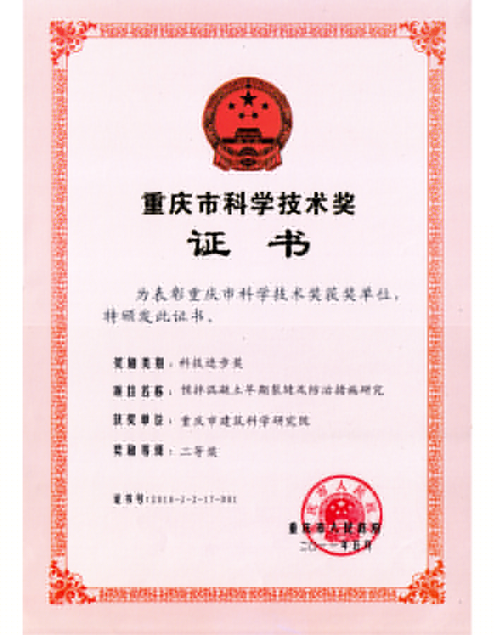 重慶市科技進(jìn)步二等獎(jiǎng)