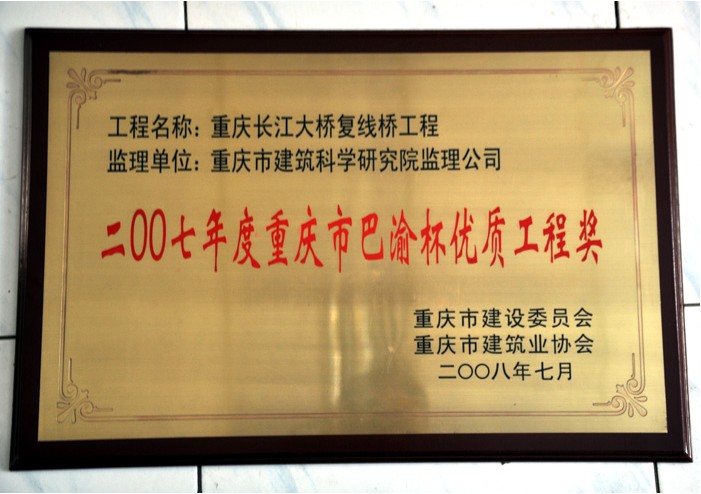 2007年度重慶市“巴渝杯”優(yōu)質(zhì)工程獎(jiǎng)
